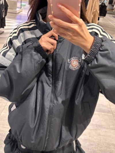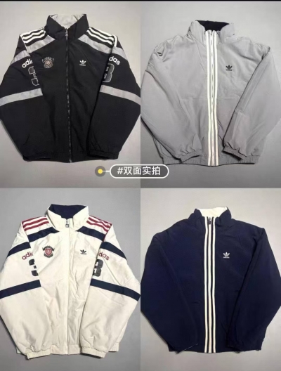可选的尺码:S M L XL 2XL S M L XL 2XL (三叶草撞色双面穿棉服 KC0094-1278#)